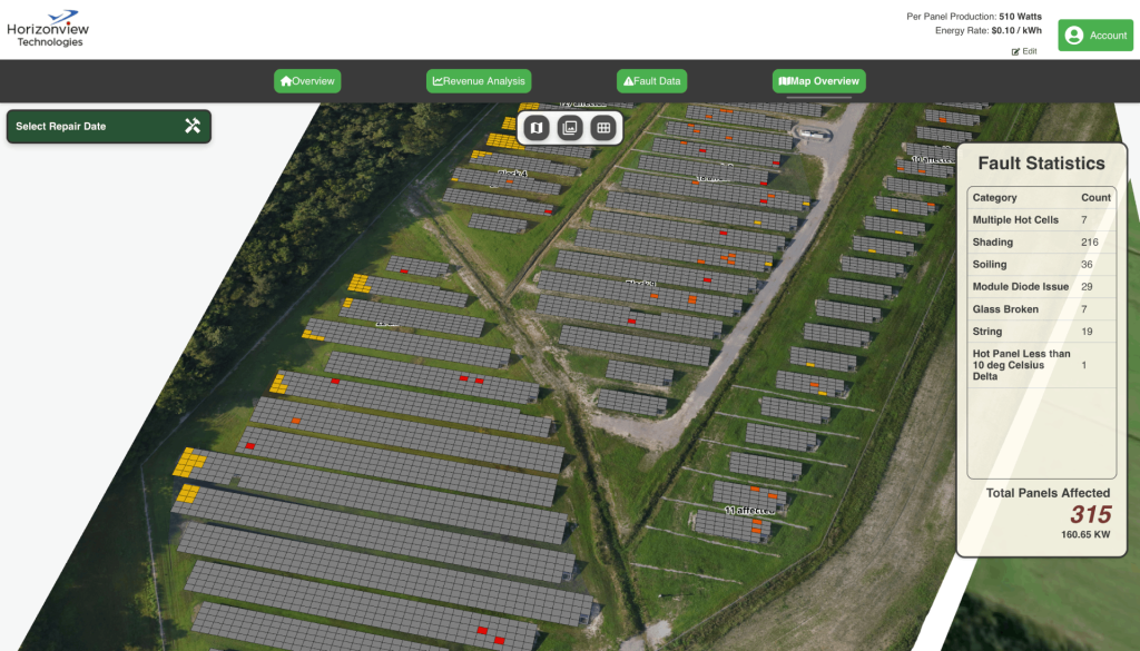 Vegetation and surrounding landscape features can significantly impact solar output and design efficiency. Horizonview’s aerial data provides high-resolution mapping of vegetation density and nearby shading objects—allowing engineers to optimize array layouts and electrical runs before breaking ground.